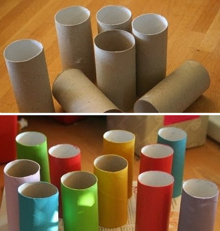完全取出紙管,用水彩顏料或丙烯顏料畫出各種顏色。