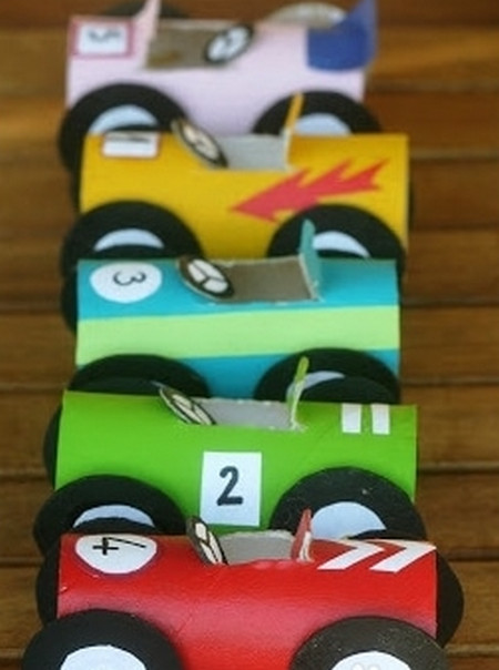 制作汽車玩具的材料:紙管、剪刀、紙板、膠水玩具、小圖釘、顏料貼紙