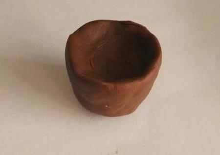 然后用兩只手把彩泥從上下端壓成粗條,再把下端捏細(xì)。這是花盆。