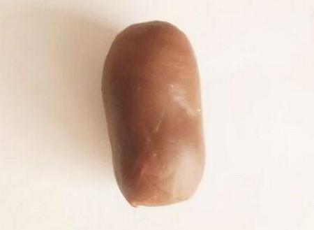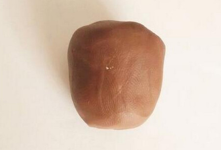 首先,把棕色的泥放在手掌上,搓成圓條狀。