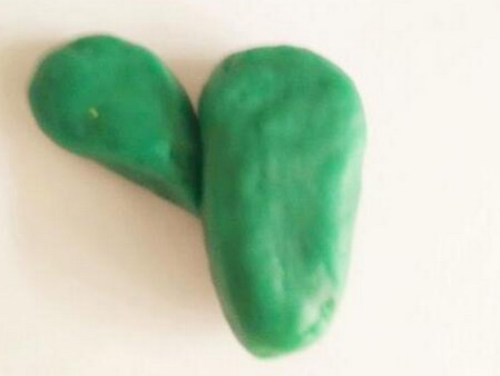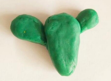 取一小塊綠色,揉成同樣的形狀,貼在大塊綠色的右上方。這些綠色的碎片被用作仙人掌。