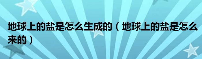 大家好,小生來為大家講解下。地球上的鹽是怎么生成的,地球上的鹽是怎么來的很多人還不知道,現(xiàn)在讓我們一起來看看吧!