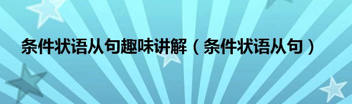 大家好,小生來(lái)為大家講解下。條件狀語(yǔ)從句趣味講解,條件狀語(yǔ)從句很多人還不知道,現(xiàn)在讓我們一起來(lái)看看吧!