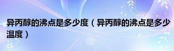 大家好,小生來為大家講解下。異丙醇的沸點是多少度,異丙醇的沸點是多少溫度很多人還不知道,現在讓我們一起來看看吧!