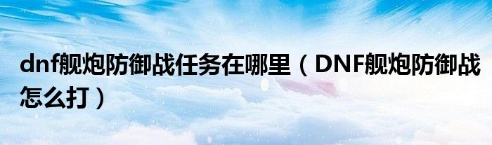 大家好,小生來為大家講解下。dnf艦炮防御戰(zhàn)任務(wù)在哪里,DNF艦炮防御戰(zhàn)怎么打很多人還不知道,現(xiàn)在讓我們一起來看看吧!