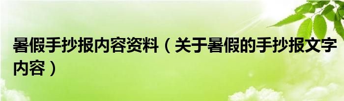 大家好,伊人來為大家解答以上問題。暑假手抄報(bào)內(nèi)容資料,關(guān)于暑假的手抄報(bào)文字內(nèi)容很多人還不知道,現(xiàn)在讓我們一起來看看吧!