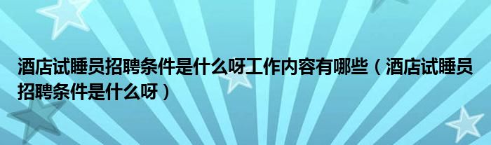 摘要大家好,小生來(lái)為大家講解下。酒店試睡員招聘條件是什么呀工作內(nèi)容有哪些,酒店試睡員招聘條件是什么呀很多人還不知道,現(xiàn)在讓我們一起來(lái)看